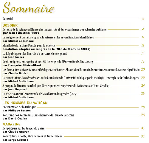 En revanche, la laïcité de l’Enseignement supérieur est un sujet de préoccupation légitime. L’accord Vatican/Kouchner a permis aux Instituts catholiques de délivrer des diplômes universitaires, alors même que leur mode de fonctionnement et d’enseignement est régi par des principes dogmatiques qui bornent l’esprit scientifique. Un nouveau pas vient d’être franchi avec les COMUE (Communautés d’Universités et d’Établissements) qu’une loi de 2013 rend obligatoires et qui ont vocation à intégrer les «Universités catholiques» et leurs facultés de théologie. Gageons que, dans ce contexte, la théologie, rebaptisée «éthique», ne manquera pas de s’intéresser au contenu des enseignements scientifiques et aux programmes de recherche.