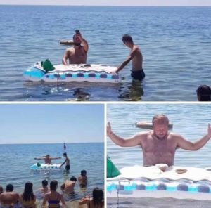 Face à la chaleur et au manque d’ombre, un prêtre catholique milanais a choisi fin juillet de célébrer une messe dans la Méditerranée à Crotone (Italie), vêtu d’un maillot de bain et en utilisant un matelas gonflable comme autel, afin de conclure un camp d’activités de jeunes volontaires. L’événement a été immortalisé par des caméras et rediffusé par plusieurs médias. On y voit le prêtre torse nu devant son autel improvisé et face à ses ouailles en maillot de bain.