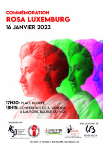 Le 16 janvier 2023, l’Association Culturelle Joseph Jacquemotte, les Jeunes FGTB Bruxelles, le Cercle de la Libre Pensée – Kring voor het Vrije Denken et À Contre Courant se réunissent pour commémorer le 104ème anniversaire de la mort de Rosa Luxemburg.