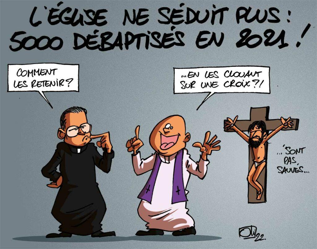 Le nombre de personnes qui ont décidé de quitter l’Eglise catholique romaine explose : 5 237 personnes ont décidé à être radiées du registre des baptêmes en 2021, contre 1 261 en 2020 et 1 800 en 2019.