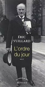 Après « 14 juillet » faisant vivre le peuple à la conquête de sa citoyenneté, paraît « L‘ordre du jour » (2017 – Prix Goncourt) qui met en scène les dominants conduisant, par leurs choix politiques, le monde à la barbarie. Le récit inclut seulement certains moments, certaines séquences : le financement du parti nazi parla grande industrie, la complicité et la capitulation des dirigeants gouvernementaux du Royaume Uni, de la France, de l’Autriche, l’Anschluss (annexion de l’Autriche par l’Allemagne), la conférence de Munich, etc. Ne sont pas abordées la crise économique, sociale, politique qui frappe l’Allemagne au début des années Trente, et aussi les positions du SPD, du KPD et des syndicats – des éléments pourtant décisifs pour comprendre l’accession au pouvoir d’Hitler et l’établissement de la dictature nazie… Mais la sélection de quelques faits majeurs ne contribue-t-elle pas à l’impact de l’œuvre, chaque court chapitre ciblant, avec une ironie cinglante, tels personnages ou telles situations ? Ce qui fait la force du récit, c’est l’art du trait, du cadrage, de la saisie de détails significatifs, de la collusion entre passé et présent.