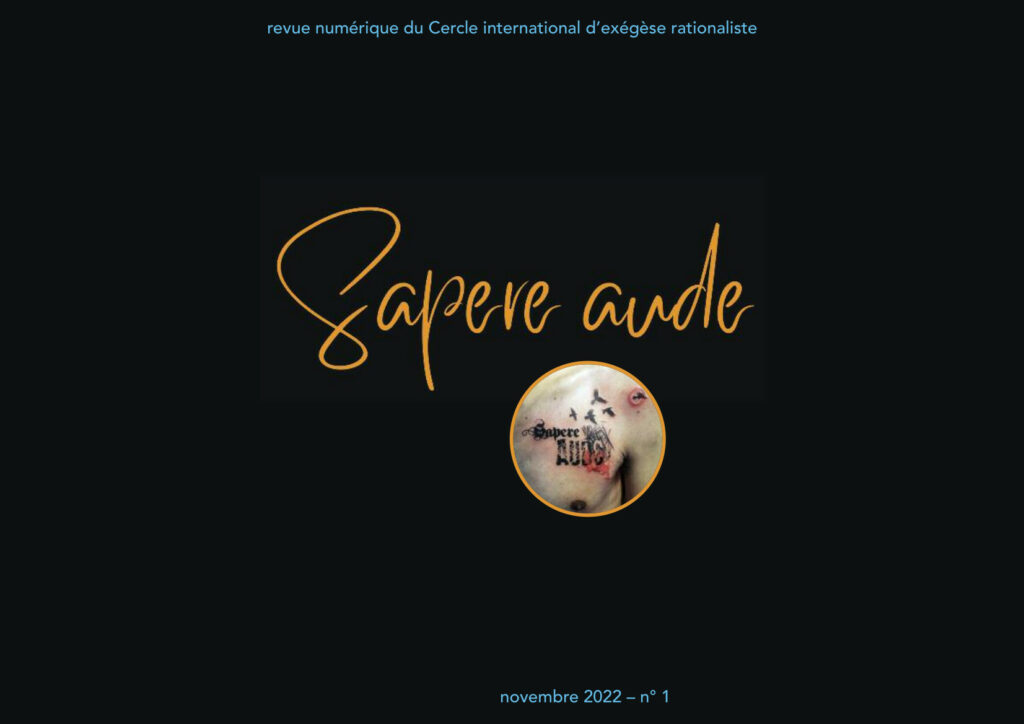 Voici les trois premiers numéros de Sapere Aude, revue numérique du Cercle International d’Exégèse Rationaliste, constitué par décision du VIIIe Congrès mondial de l’Association Internationale de la Libre Pensée.